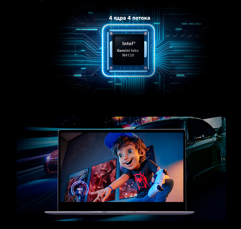 Повысьте личную эффективность с 4-ядерным процессором Intel Gemini Lake N4120. Он обеспечит достаточную производительность для обработки видео, изображений и игр.