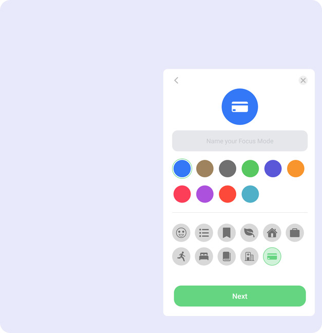 Настройте временные отрезки, когда Вы фокусируйтесь на работе, спорте, чтении, разрешите уведомления необходимых приложений в определённых периодах.